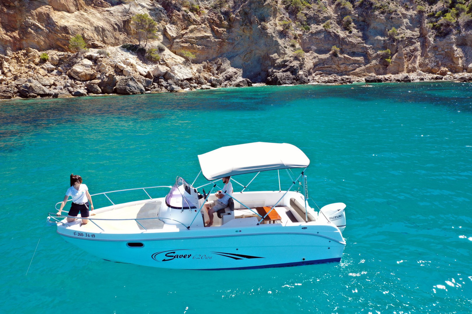 The boat is 6.00 meters long and equipped with a 140 HP engine. It is ideal for couples, families, or groups of up to 7 people. A comfortable option to calmly cruise along the beaches of the Andratx coast that are inaccessible on foot.