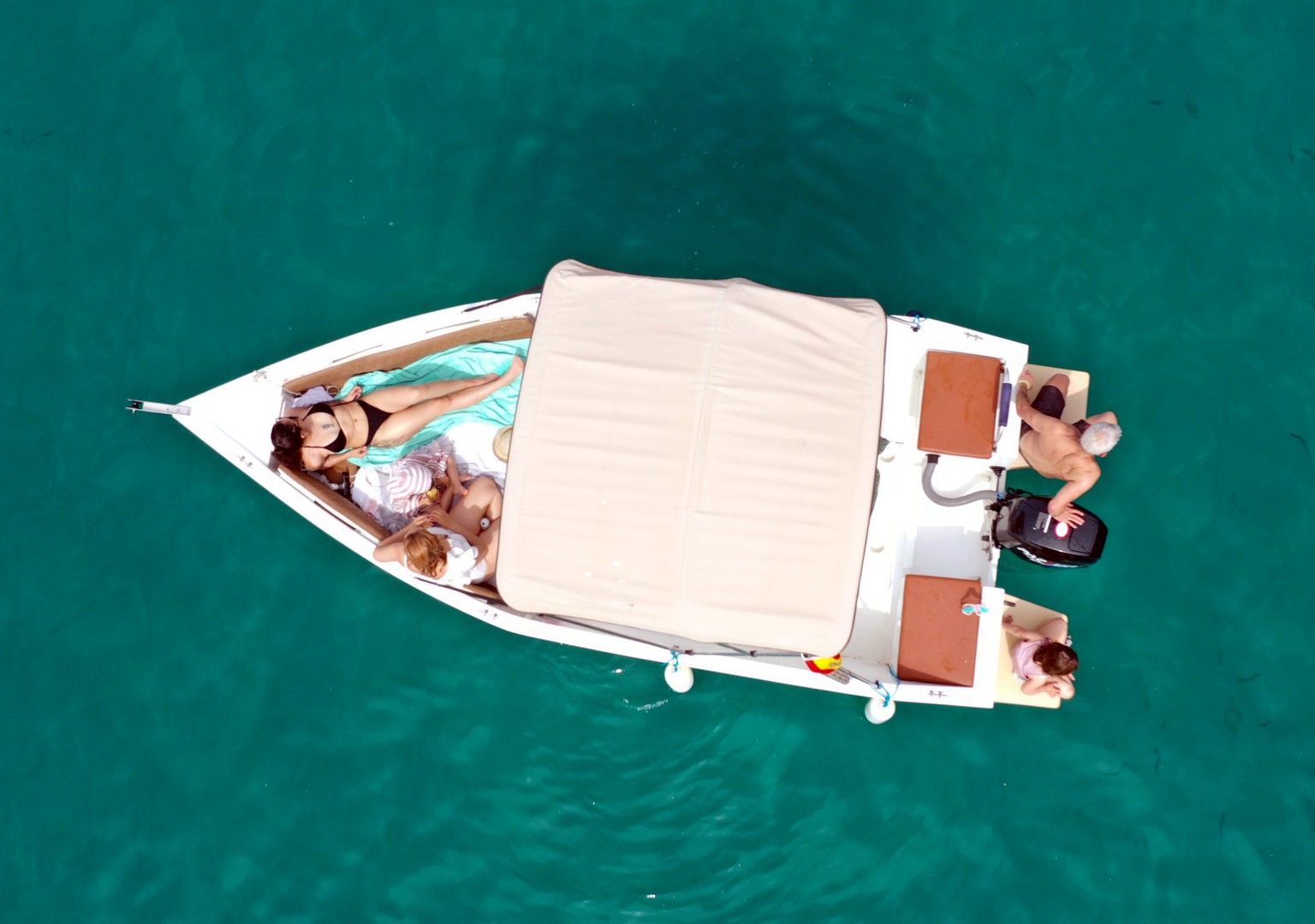 This boat is commonly rented for family outings, fishing trips with a rod, getting started in boating, sunbathing in unique coves, or even using it as a tender.